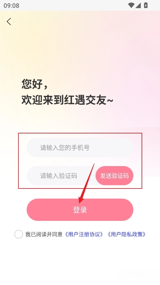 2、输入手机号验证码登录即可,首次登录自动注册