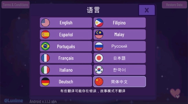 2, 在其中点击想要更换的语言,需要注意的是,切换成中文后并非所有内容都会变成中文,剧情模式部分是不进行翻译的。
