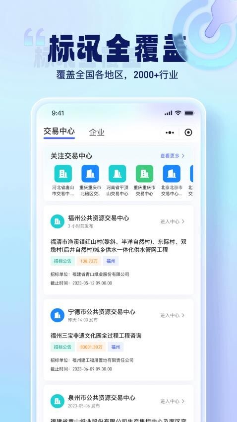 2. 用户在软件里能够查看各类招投标交易中心的相关信息。