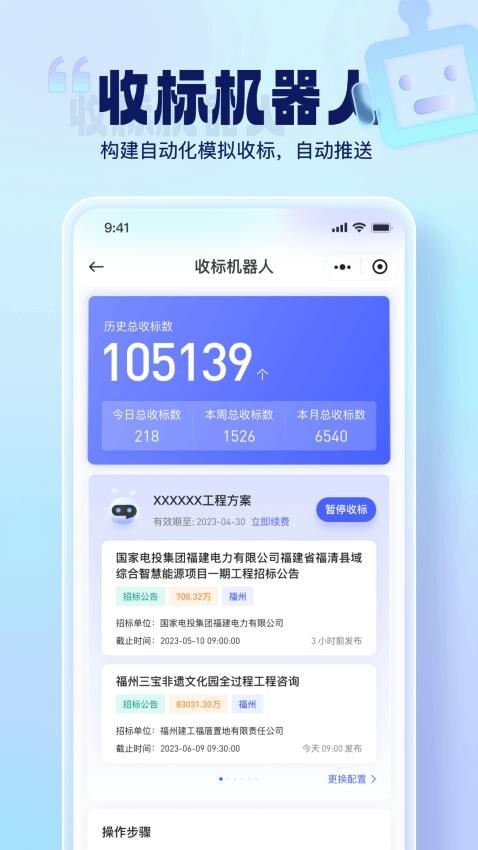 为用户提供选择收标机器人的功能,助力用户在线实现智能收标操作。