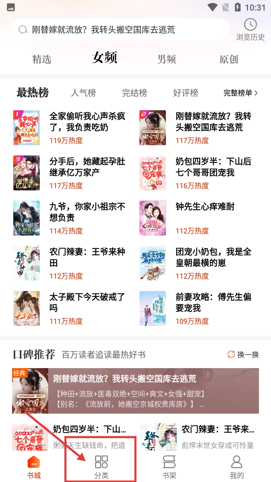 2、在书城界面,点击底部【分类】按钮,可进入小说分类页面,方便查找不同类型小说。
