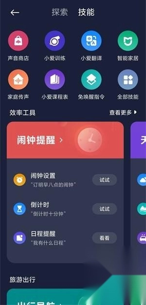 5. 技能中心:这里能帮你找到小爱整合的数十种能力,你所需的功能我们都已覆盖。目前小爱正处于能力快速拓展的阶段,后续还会持续新增更多实用技能。