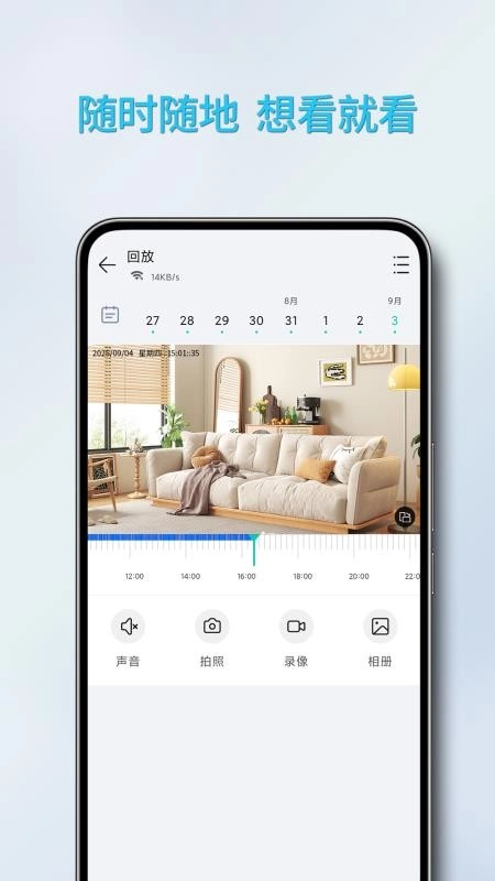 这里同样支持监控录像的历史回放功能,只需一键操作就能调取历史录像,方便随时回顾查看。