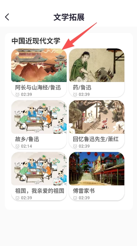 3、设置文学拓展板块,用于呈现中国近现代文学课程,助力文学知识的拓展学习。
