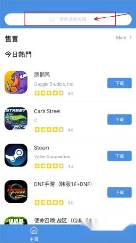2、也可以点击上方的搜索栏,输入游戏名称来快速搜索定位。