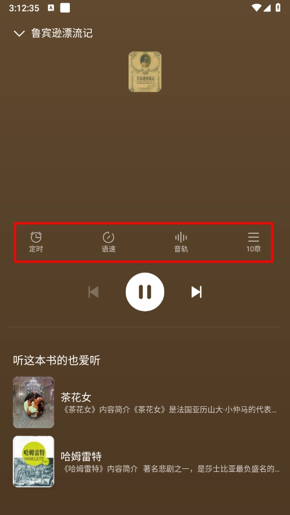 5、如图所示,在听书界面能够进行定时听书、调节语速听书以及选择音轨等操作。