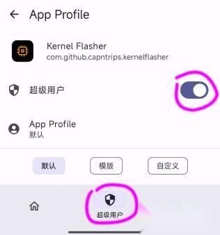 2、开启 KernelSU,打开 Kernel Flasher 并授予超级用户权限