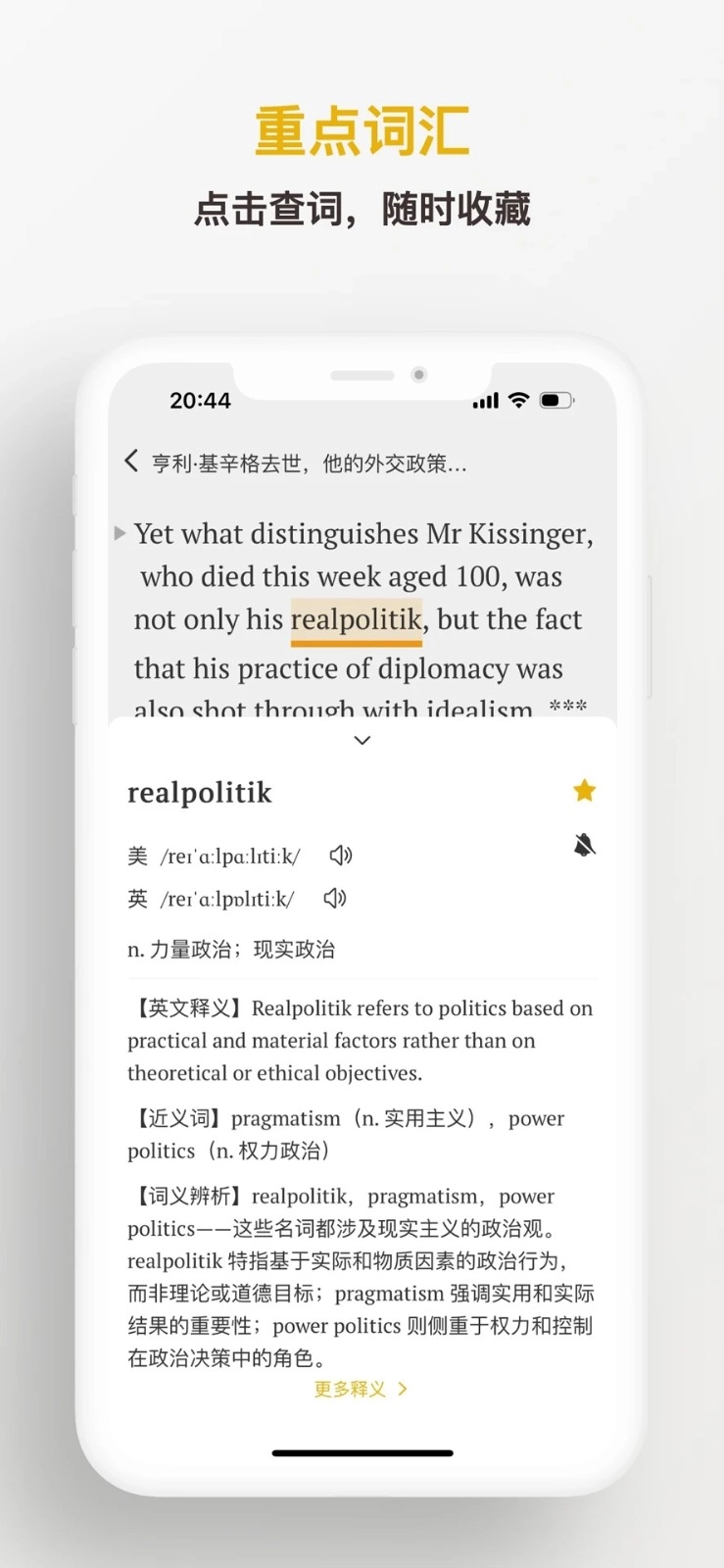 - 一站式学习助手:涵盖查词、收藏、AI口语评测、长难句剖析等实用功能。