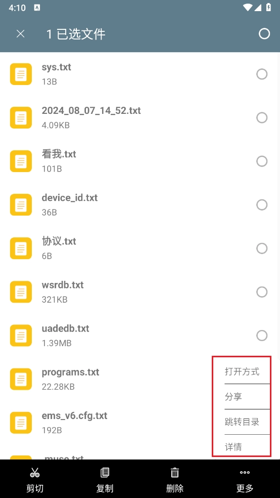 4、例如点击“文档”选项进入后,挑选对应的文件,即可执行复制、删除、剪切等操作。