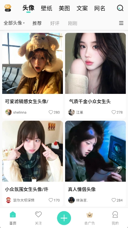 - 头像涵盖情侣、女生、男生、卡通、静物、微信头像等多种类别。