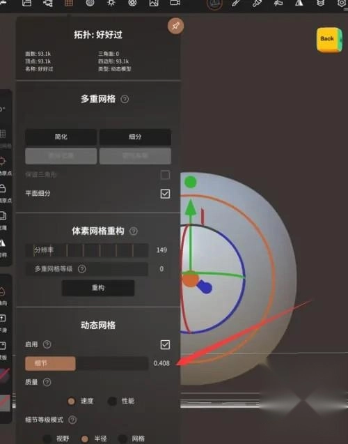 接着,通过手指滑动来调整网格细节。