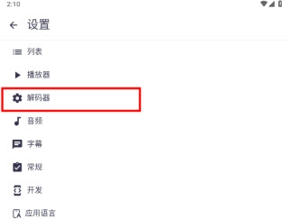 2、点击解码器,进入解码器的设置界面。