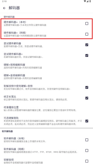 3、勾选“硬件解码器+本地和网络”这一选项,即可完成硬件解码的开启操作。
