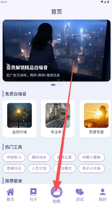 1、在良言首页底部选择“助眠”板块。