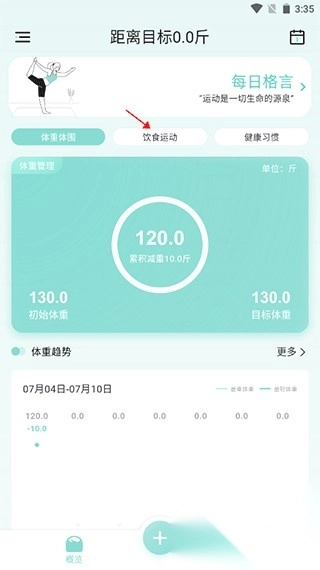 1、打开软件后进入软件概览,选择饮食运动那一栏。