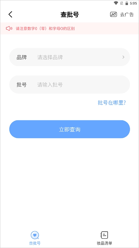 2、选择品牌,输入批号,点击【立即查询】按钮。