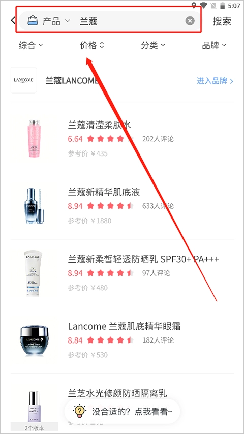 搜索完成后会展示相关商品的列表,点击对应的产品即可进入详情页,在该页面里找到成分分析的板块。