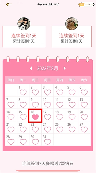 5、只有一方签到的话只能获得半颗心哦!需要双方都完成签到才算完整签到呢;