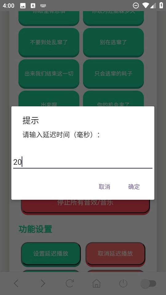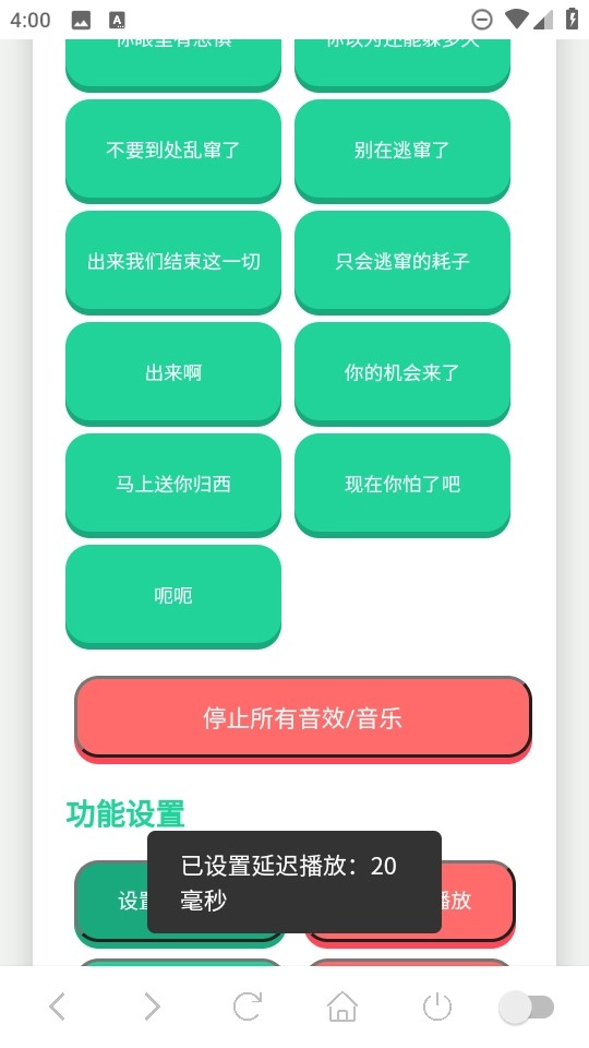 5、这里小编以20毫秒为例,稍作等待后,界面上便会显示“已设置延迟播放20毫秒”的提示。