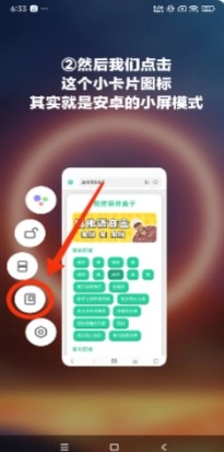 ②接着我们点击这个小卡片样式的图标,它对应的其实就是安卓系统里的小屏模式。