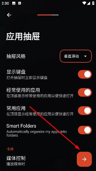 4、进入【应用抽屉】的设置界面后,能够对抽屉风格、键盘显示状态、常用应用列表等选项进行配置,之后点击箭头按钮,即可完成NovaLauncher设置向导的全部操作流程。