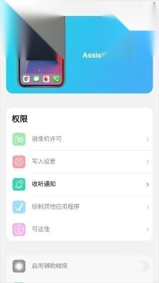6、启动器内除上述提及的组件外,其余组件需手动开启权限后方可正常使用,下图展示的即为“小白点”功能对应的权限设置页面。