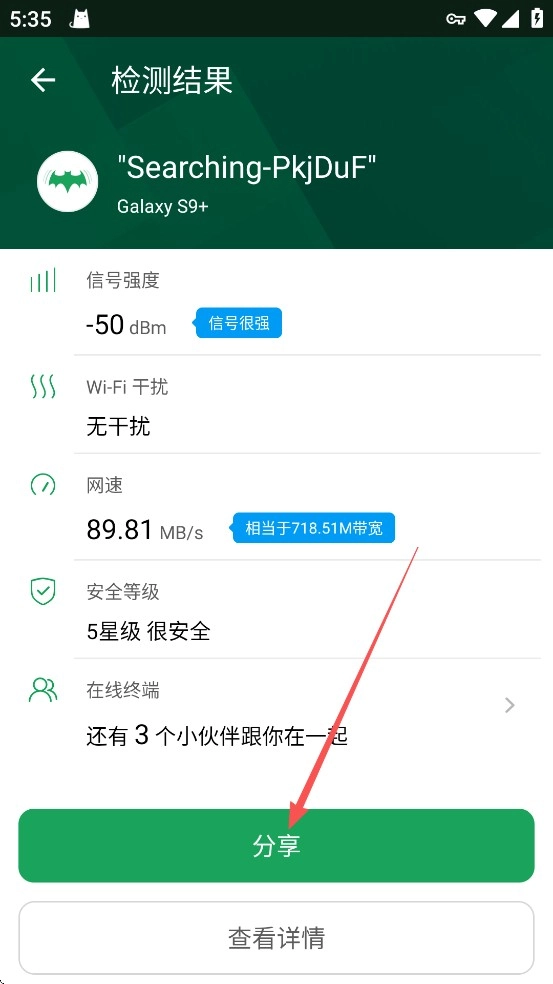 2、检测好之后,点击分享