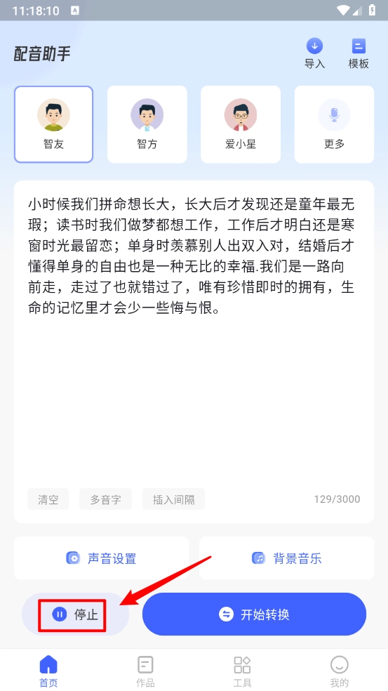 作品编辑分享:支持添加背景音乐、字幕特效,生成的配音视频能直接保存到相册或分享到抖音、微信等平台。