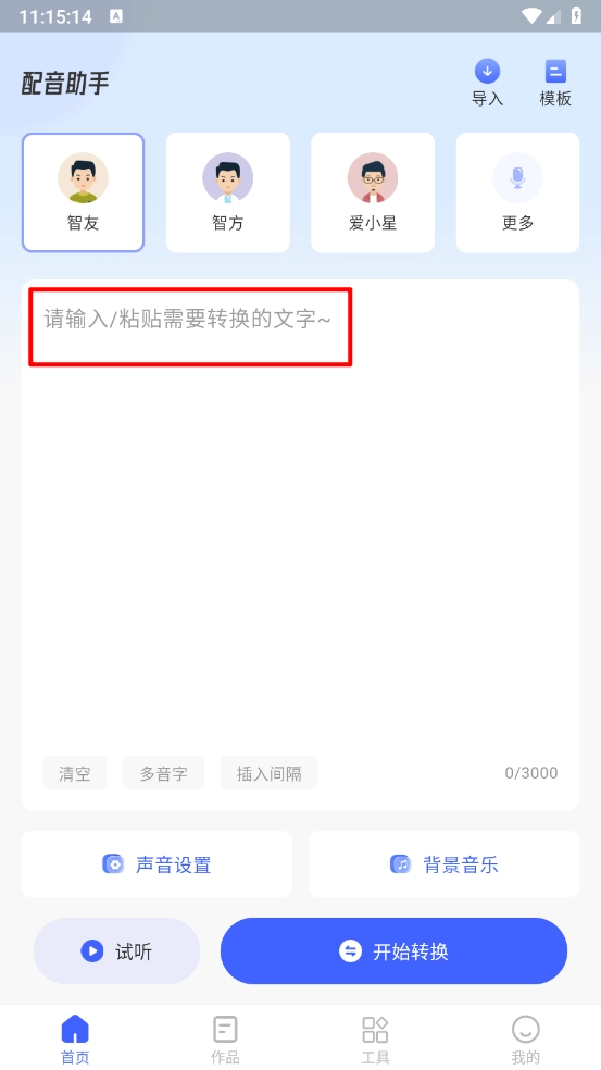 2、进入首页,如图,粘贴所需转换的文字。