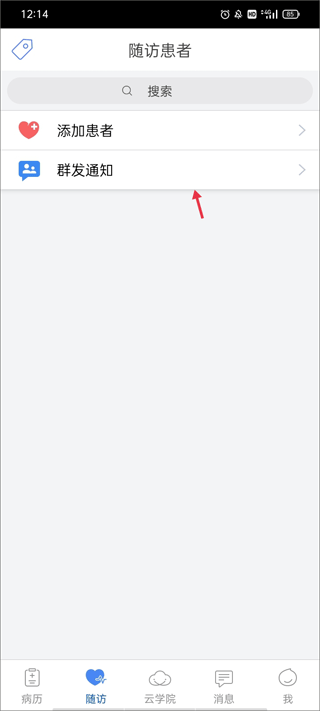 (3)此时页面会弹出一个提示,询问是否要向患者群发通知,点击“是,群发”按钮即可。