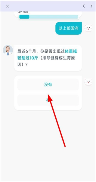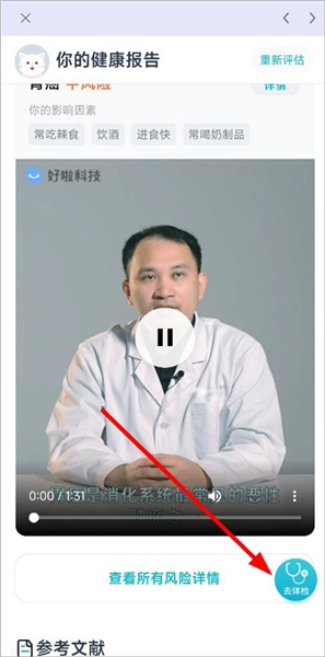 5、进入健康评估页面,依据提示完成问卷填写,待评估生成健康报告后,点击右下角的去体检图标。