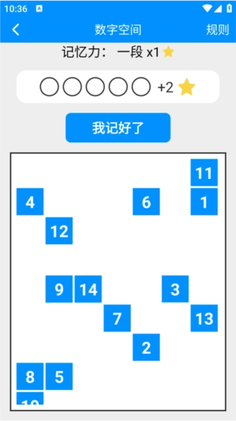 1、数字空间记忆:先记住开局时数字在页面上的分布情况,记清楚后,再按照数字的顺序依次点击对应的位置。