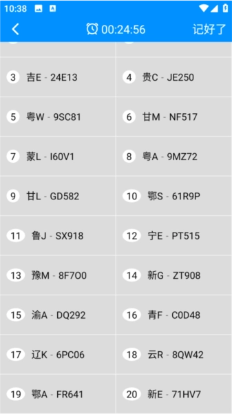 5、车牌号记忆。