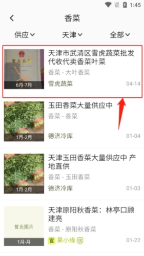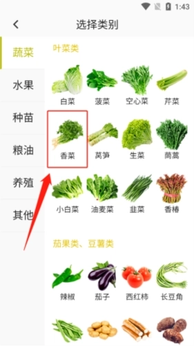 2、在右侧搜索栏挑选需要查询的类别,然后点击,这里以香菜举例说明