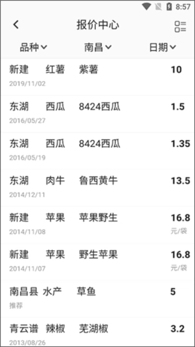 3、用户借助该软件能够在线查看农产品行情,知晓农产品价格的变动状况,把握市场动态;