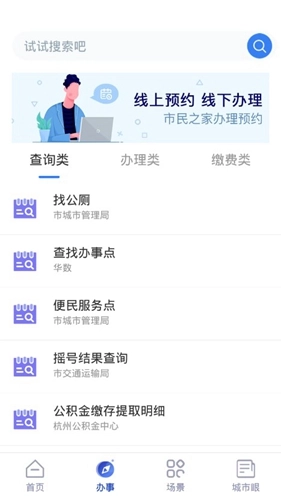 然后就是【场景】,这里就是便民服务的渠道了,用户们可以根据自己当前的办事场景来筛选,就可以找到需要的便民服务,还是比较人性化的。