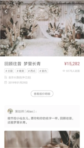 2、若您想查看婚礼案例,可点击“热门案例”板块进入浏览,从中挑选心仪的案例;此外,您还能查看每场婚礼对应的报价及详细的价格明细。