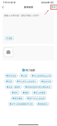 3、输入你想要分享的内容,点击右上方的发布即可;