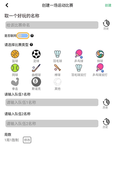 3、用户能够便捷地创建比赛活动,设置赛事名称与参赛队伍,便于开展比赛计分和数据统计工作。