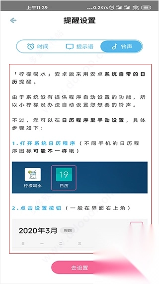4、要是想用铃声来提醒,操作上会稍显麻烦,你可以按照系统提供的图文教程,一步步完成设置。