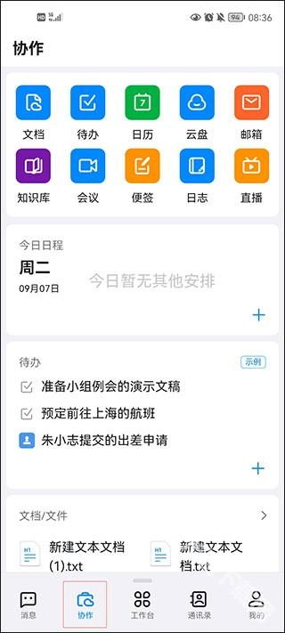 在协作场景中,你可以使用文档、待办、日历、云盘、邮箱、知识库、便签等多种工具。