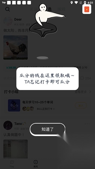 6、右上角可领取瓜分的钱;