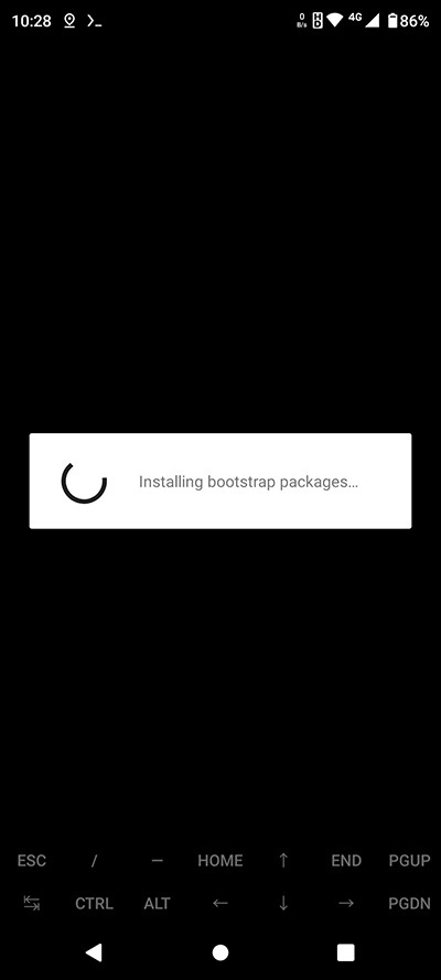 初次使用Termux时,需要等待“Installing bootstrap packages(安装引导程序包)”这一步完成,具体可参考下方图片。