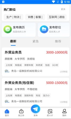 人才推荐服务:系统会依据用户的真实需求,智能筛选并匹配合适的优质岗位,随后向用户推送相关推荐内容,助力用户第一时间掌握最新的招聘动态。