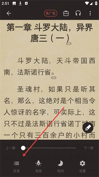 1、点击想要阅读的书籍,例如【斗罗大陆】,即可进入该书籍的阅读页面。