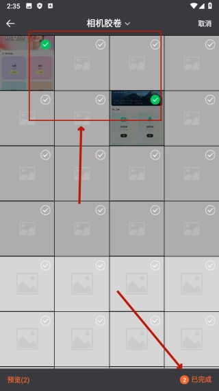 在图片选择界面,勾选好想要的图片后,点击“已完成”按钮,就能进入拼图的编辑页面了。