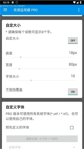 资源监视器Pro是一款能轻松监测手机使用状态的软件,可随时查看手机内存、CPU使用率、CPU温度及频率等数据。需注意的是,首次使用前需手动开启相关权限才能正常运行。用户还能自定义显示的位置、大小、颜色与透明度,以便更清晰地了解手机资源的使用情况。