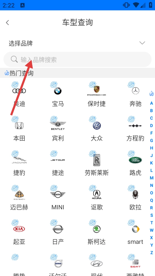 在车型查询页面,搜索并选择【宾利】品牌后,即可进入车型选择页面。
