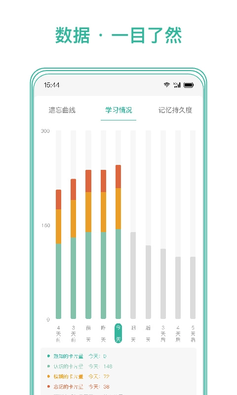 它能够依据每个人的学习状况生成对应的遗忘曲线,使你可以清晰地了解到具体的变化情况。