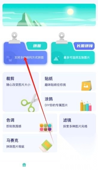 进入首页后选择拼图模式,你可以根据个人需求选择普通拼图或长图拼接,小编采用的是排列拼图。